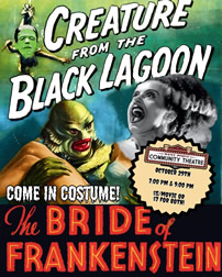 Double Feature Creature From the Black Lagoon & Bride of Frankenstein Oct. 29 7:00 & 9 :00 $5 or $7 for both